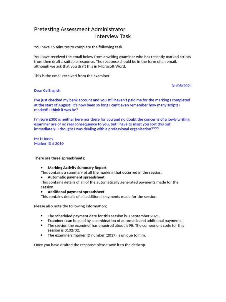 Sample interview questions for Task 1 of the intermediate ... / sample ...