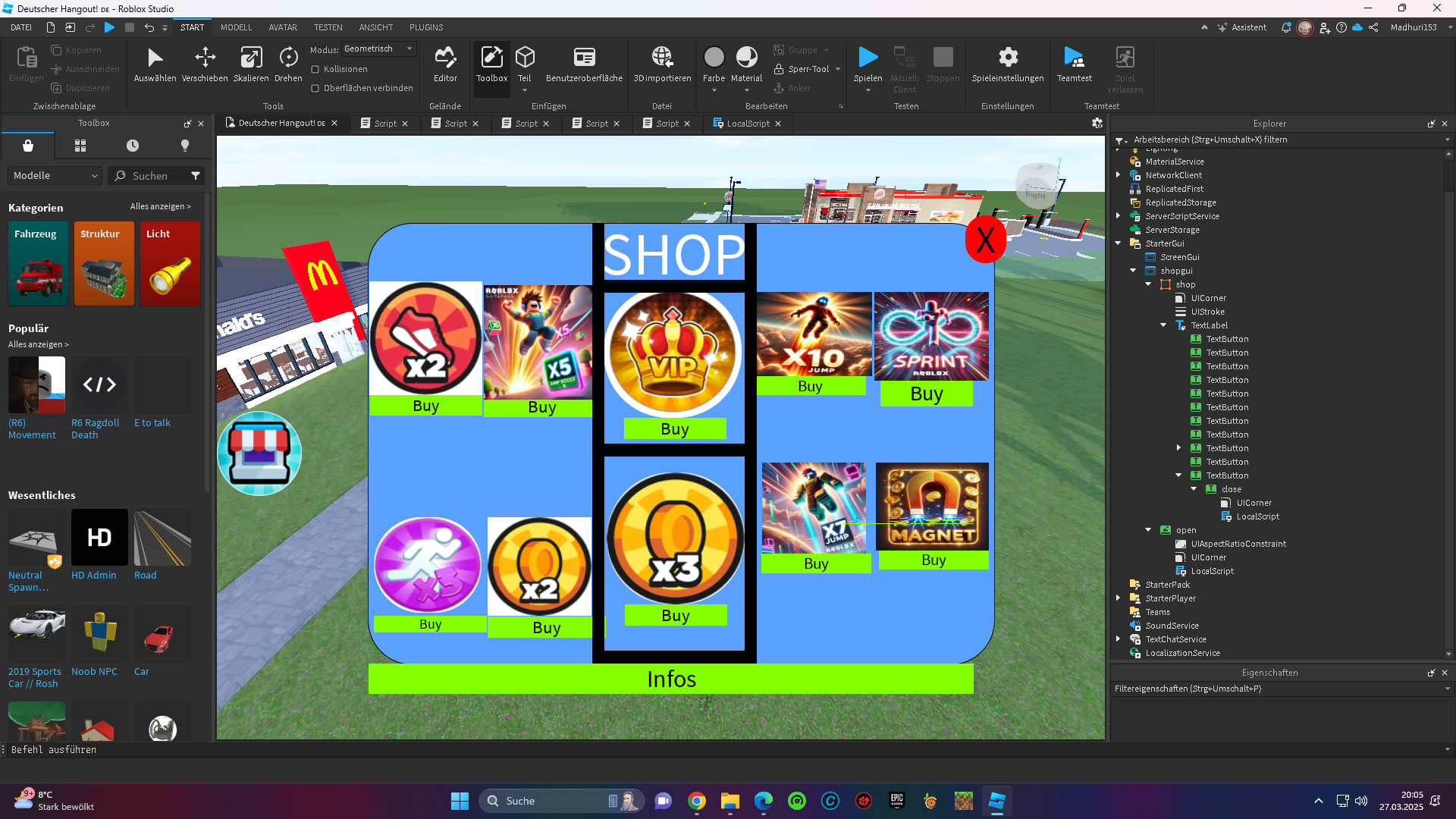 How to make a gui open and close script with x button! | Roblox Studio ...