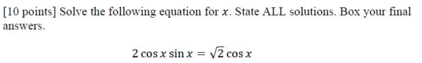 Solved [10 points] Solve the following equation for x. State | Chegg.com