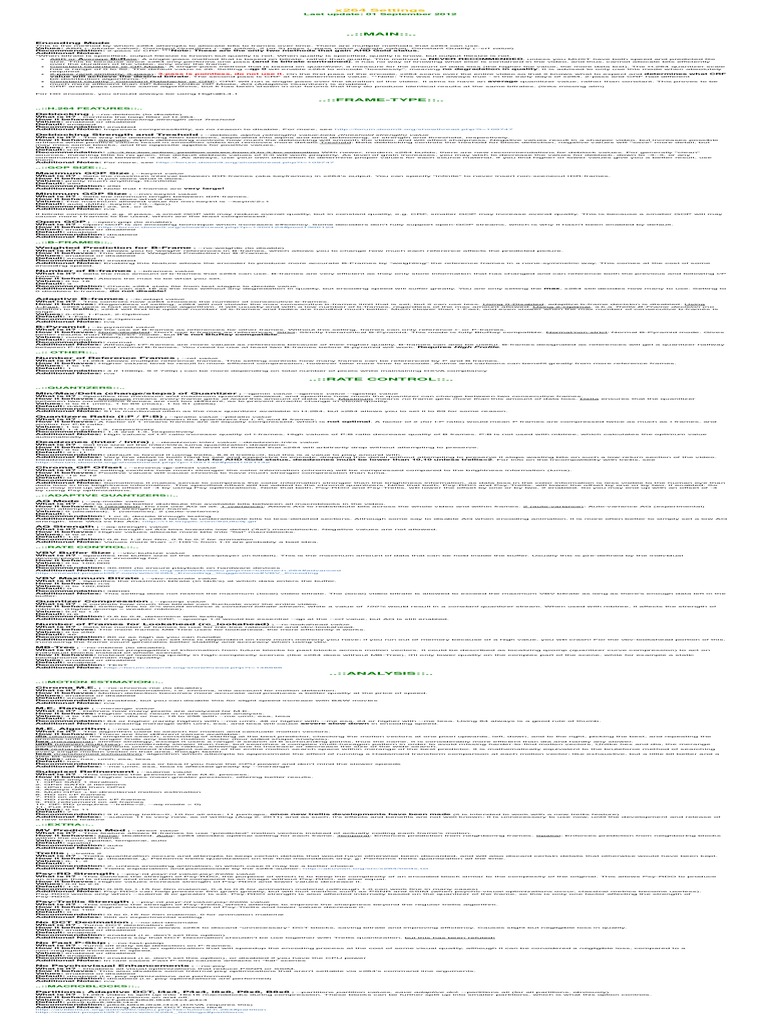 x264 Video Encoding Options Reference Guide | PDF | Display Technology ...