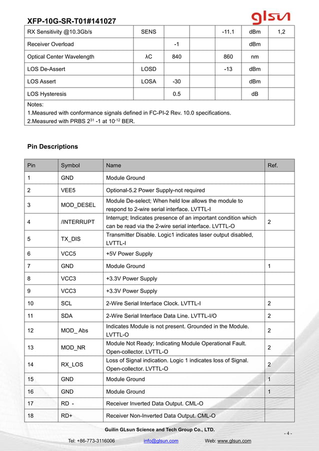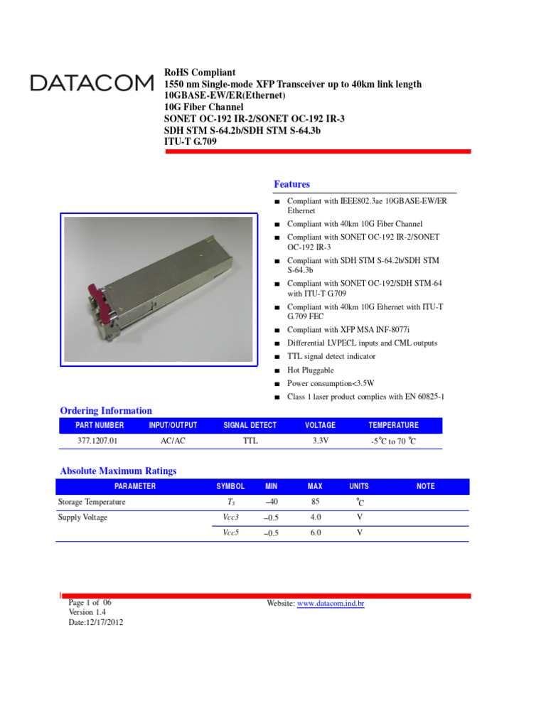 1550 nm 10G XFP Transceiver Specs | PDF | Telecommunications ...