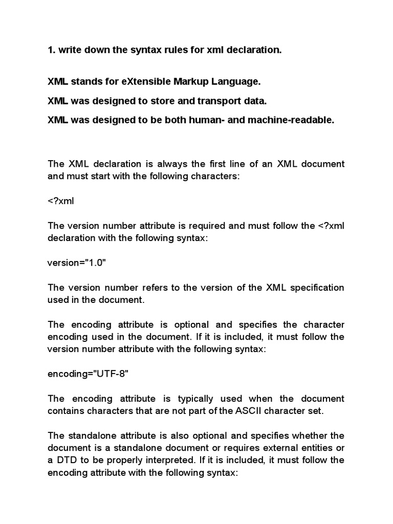 Write Down The Syntax Rules For XML Declaration | PDF | Xml | Xslt