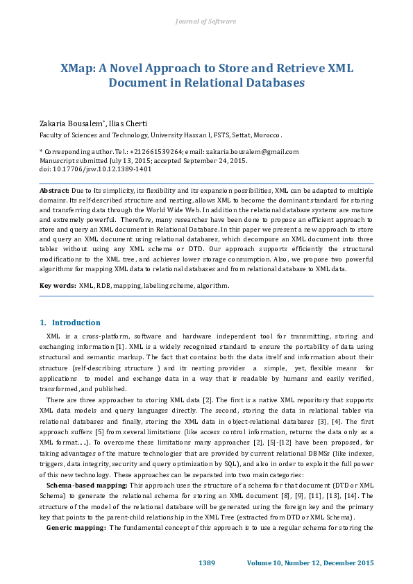 (PDF) XMap: A Novel Approach to Store and Retrieve XML Document in ...