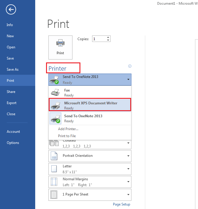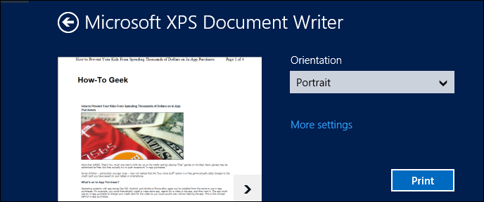 How to print to the Microsoft XPS Document Writer in Windows PC