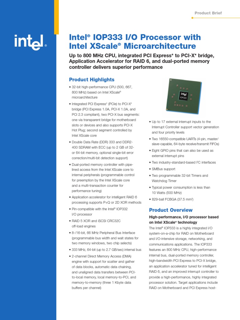 Intel Iop333 I/O Processor With Intel Xscale Microarchitecture | PDF ...