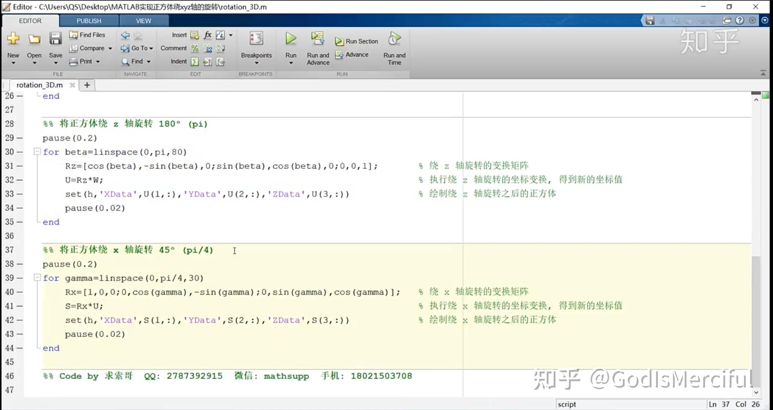 在MATLAB中实现正方体绕xyz轴的旋转 - 知乎