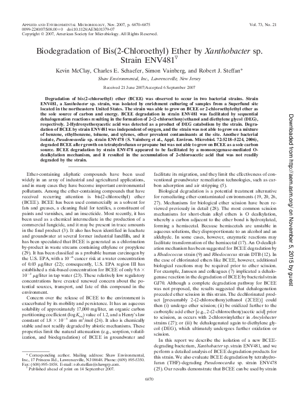 (PDF) Biodegradation of Bis(2-Chloroethyl) Ether by Xanthobacter sp ...