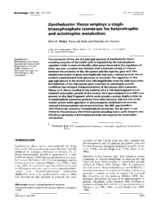 (PDF) Xanthobacter flavus employs a single triosephosphate isomerase ...