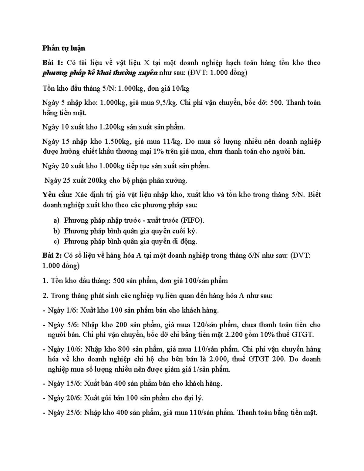 BÀI TẬP NHÓM CHƯƠNG 4 - xccc - Phần tự luận Bài 1: Có tài liệu về vật ...