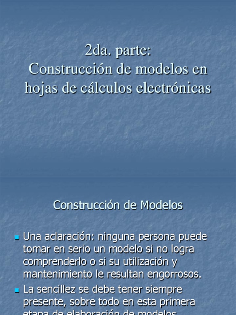 Construcción de Modelos en Hojas de Cálculo | PDF | Hoja de cálculo ...