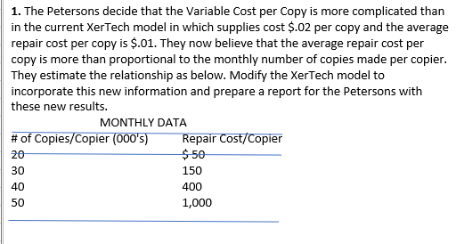 Solved 1. The Petersons decide that the Variable Cost per | Chegg.com