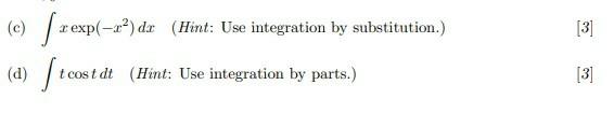 Solved (c) ∫xexp(−x2)dx (Hint: Use integration by | Chegg.com