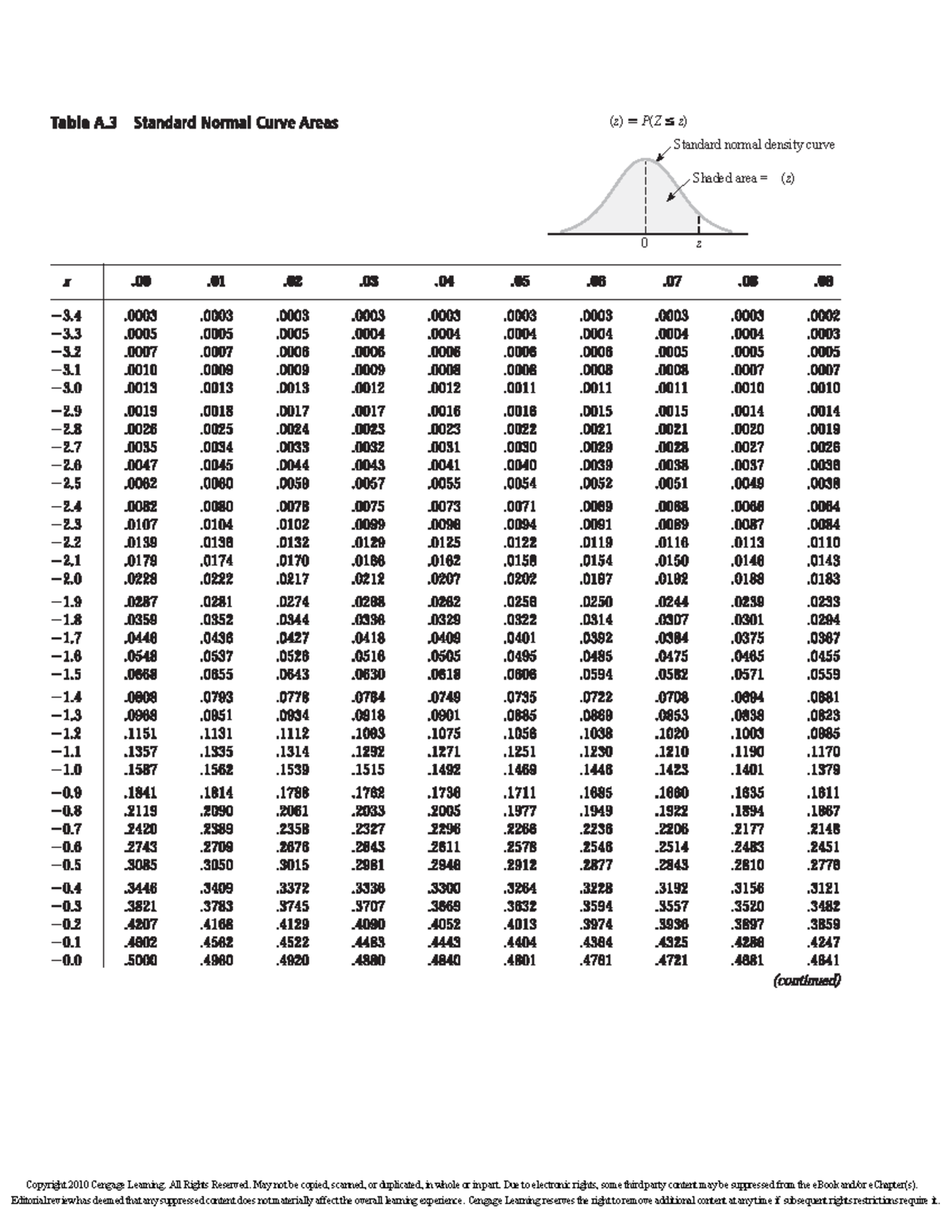 Standard Normal Density Curve and Shaded Areas (z) - Study Notes - Studocu