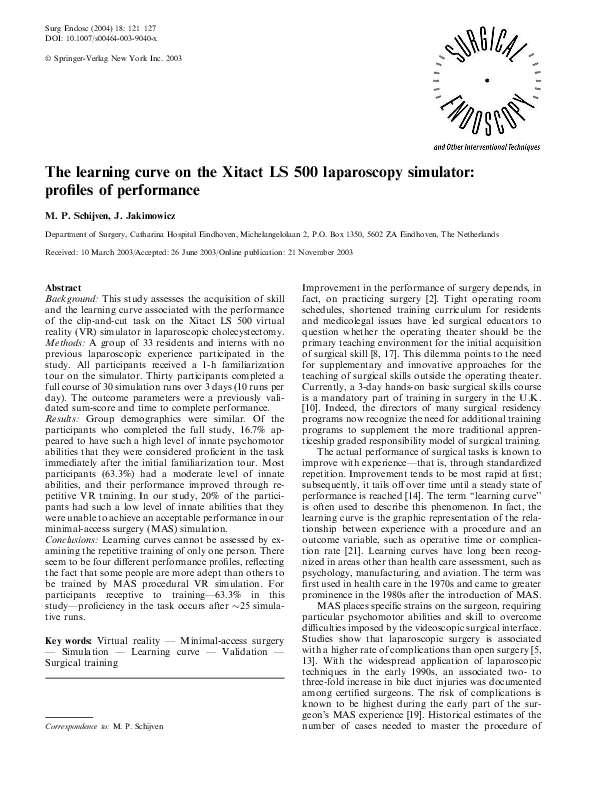 (PDF) The learning curve on the Xitact LS 500 laparoscopy simulator ...
