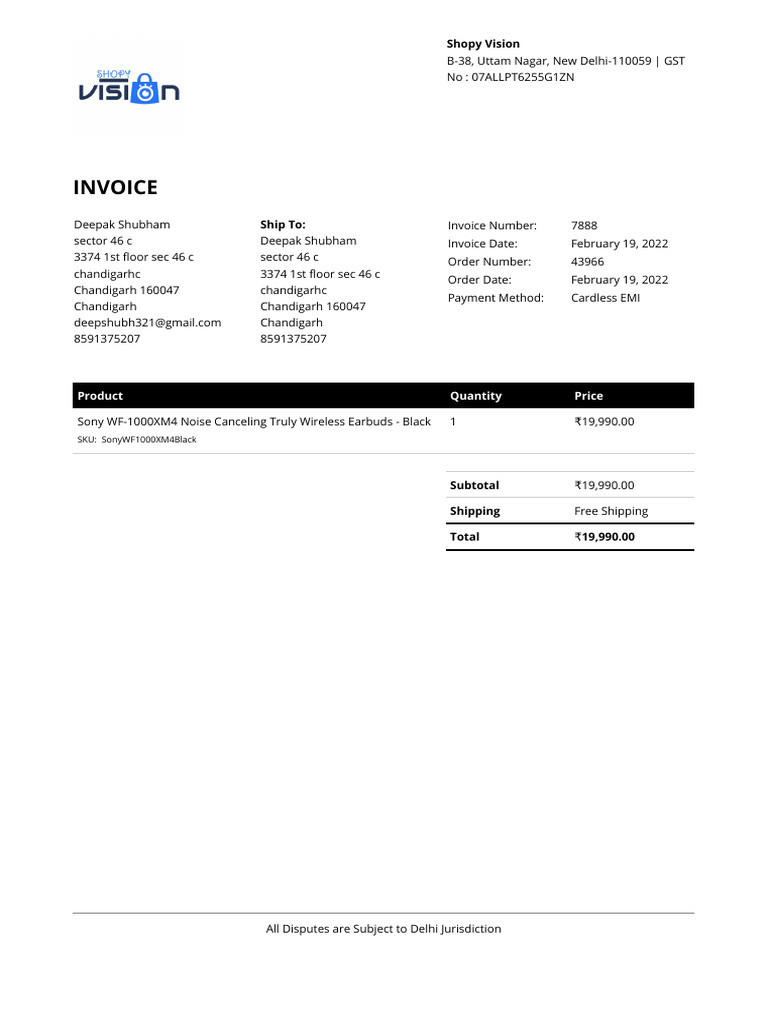Invoice for Sony WF-1000XM4 Purchase | PDF
