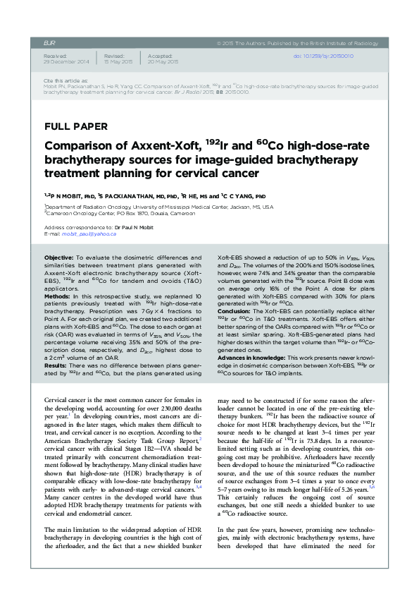 (PDF) Comparison of Axxent-Xoft,192Ir and60Co high-dose-rate ...