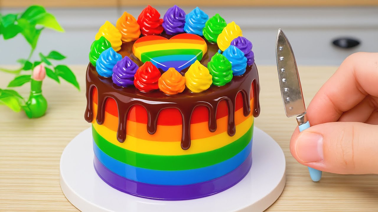 Mini Rainbow Cake Recipe With Chocolate | Satisfying Miniature Colorful ...