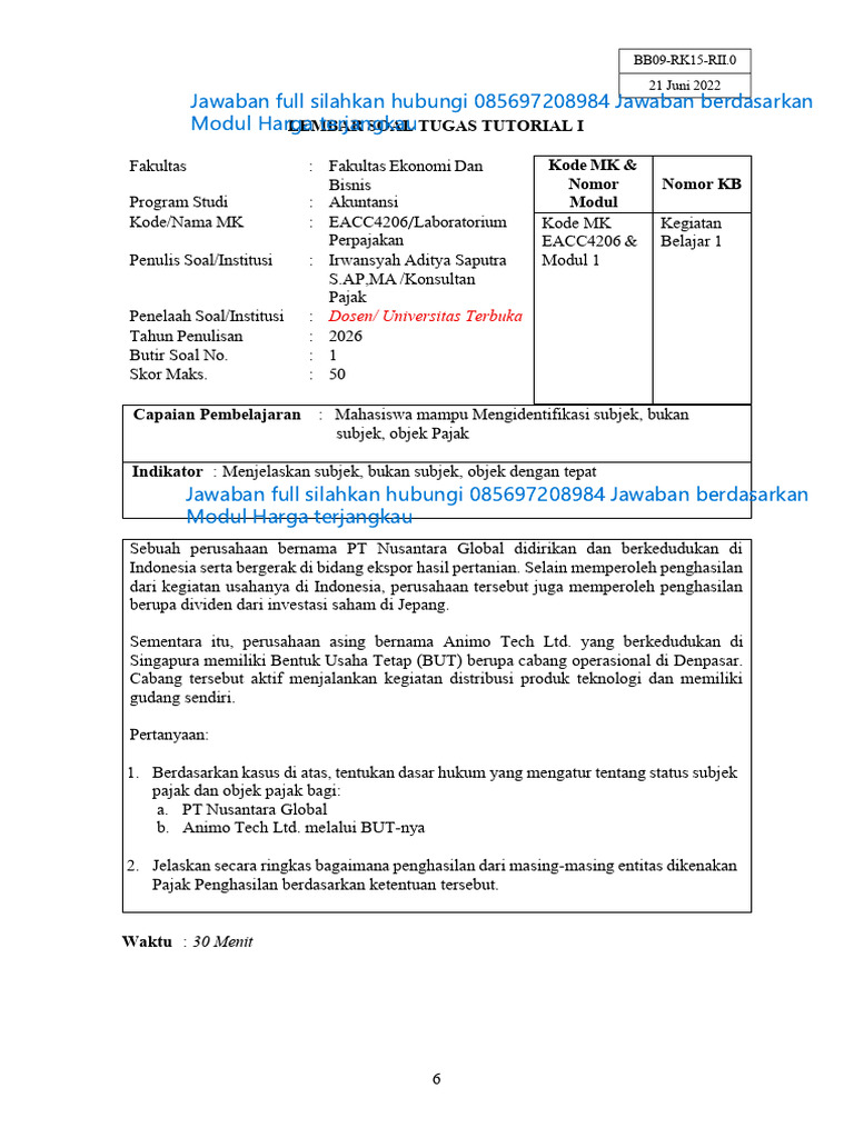 Lembar Soal Tugas Tutorial Sesi 1 | PDF