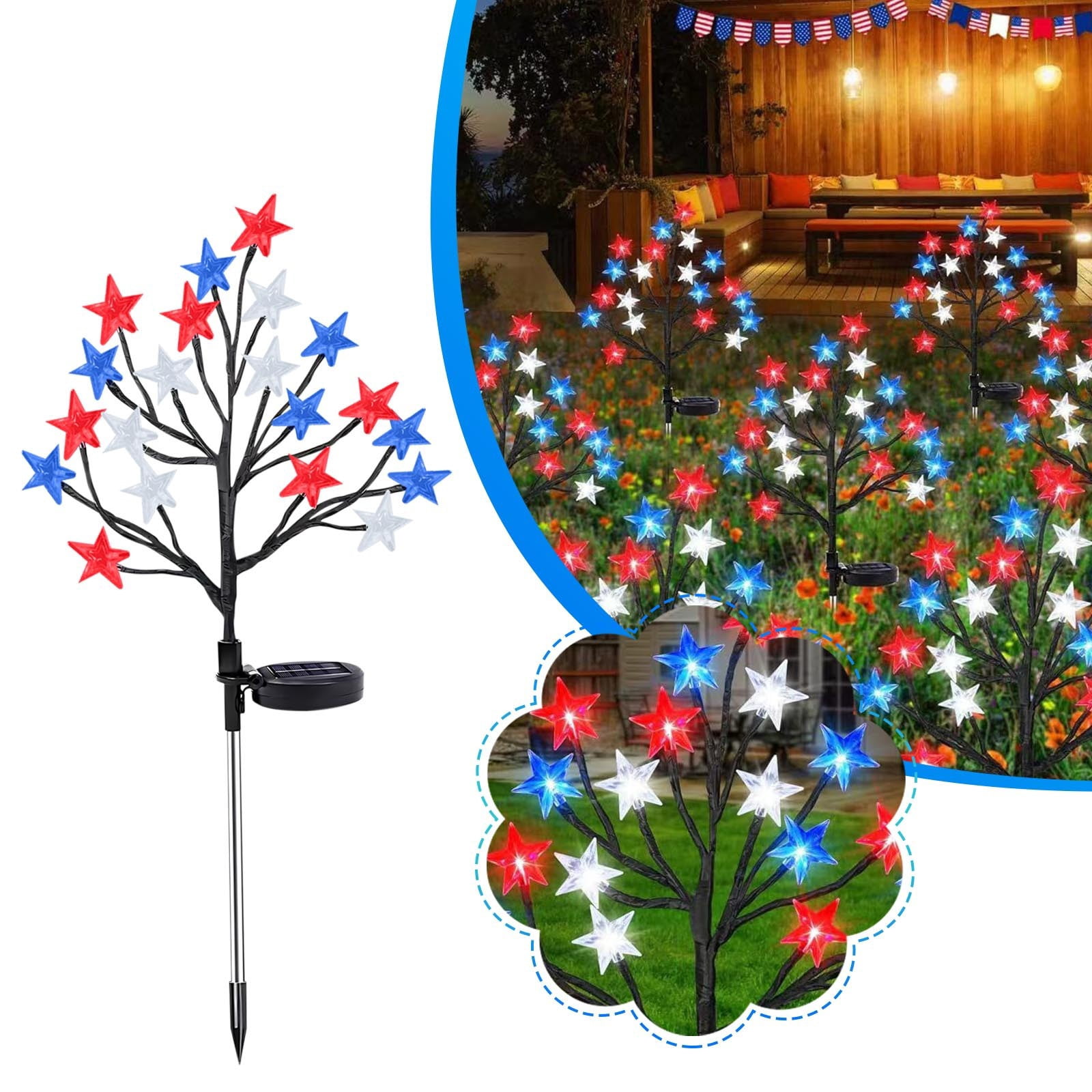4th of July Decorations Outdoor, Solar Star Lights Red White Blue ...