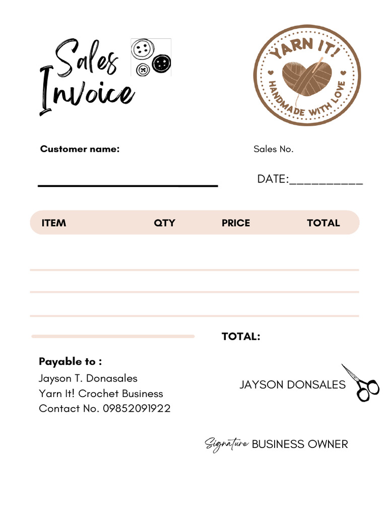 Sales Invoice for Yarn It! Business | PDF