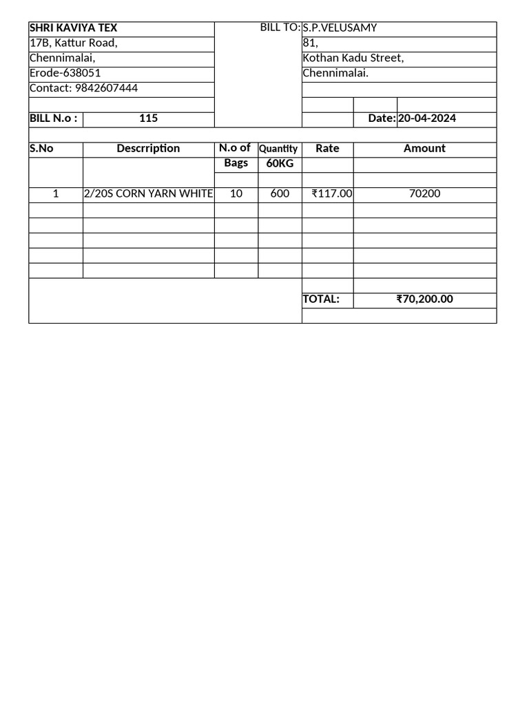 Invoice for Corn Yarn Purchase | PDF