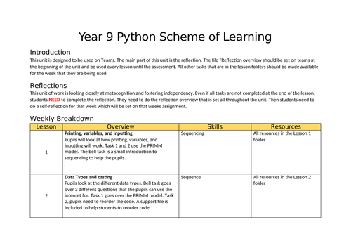 Python Stage 1 - Updated for Y9 2025 - LessonUp