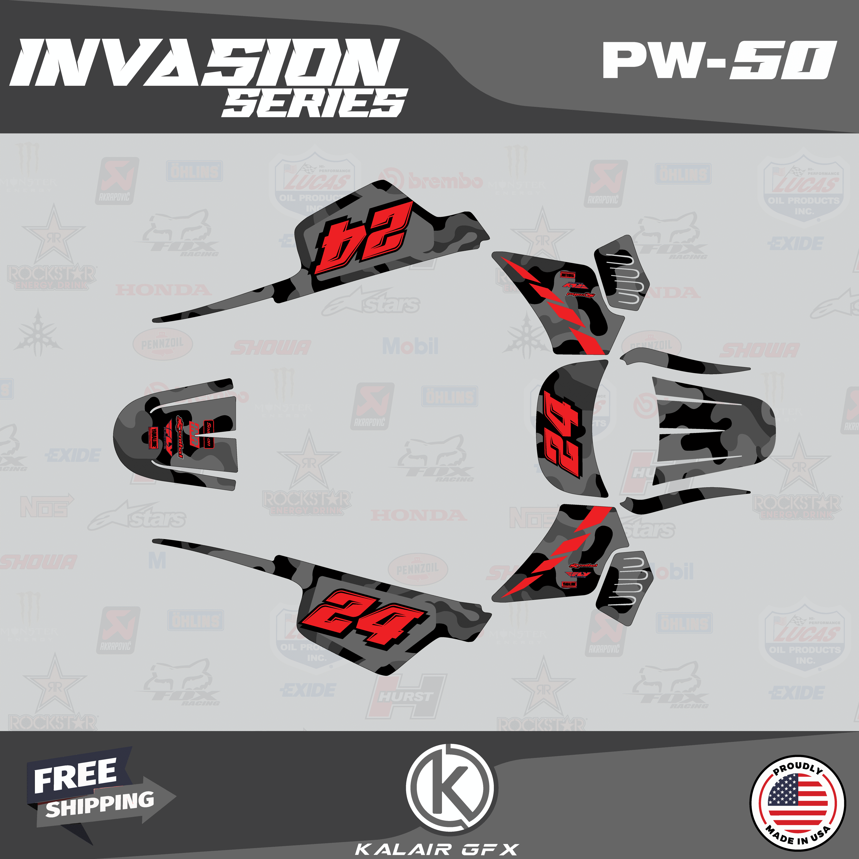 Kalair GFX Graphics Kit for Yamaha PW50 (All Years) Invasion Series ...