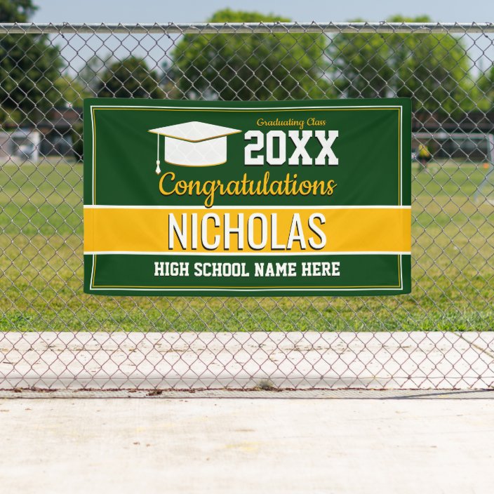 Green and Yellow School Colors Graduation Banner | Zazzle