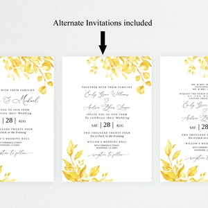 Watercolor Yellow Wedding Invitation Template, Yellow Invitation ...