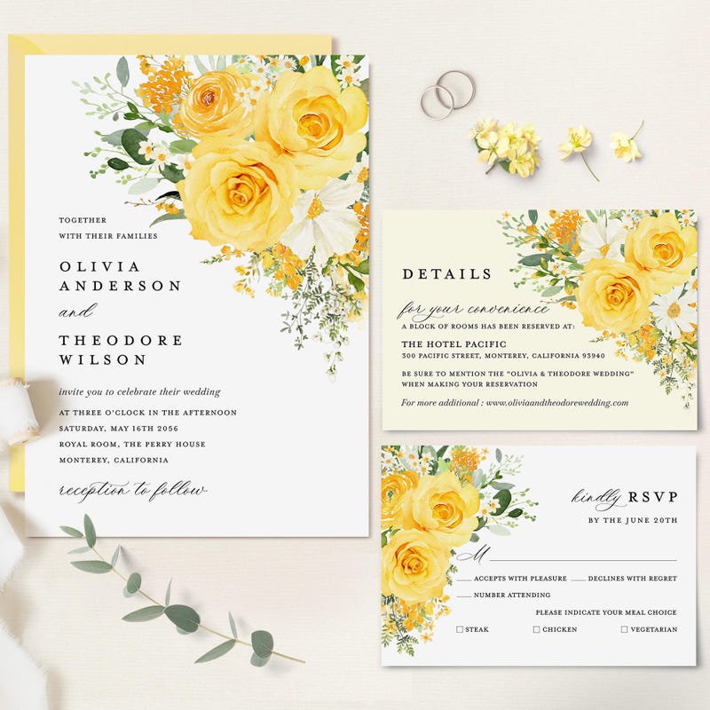 Yellow Rose Blooms Wedding Invitations – Mospens Studio