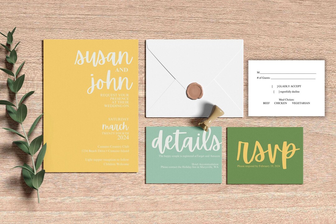 Emerald Green and Golden Yellow Wedding Invitation Template - Etsy