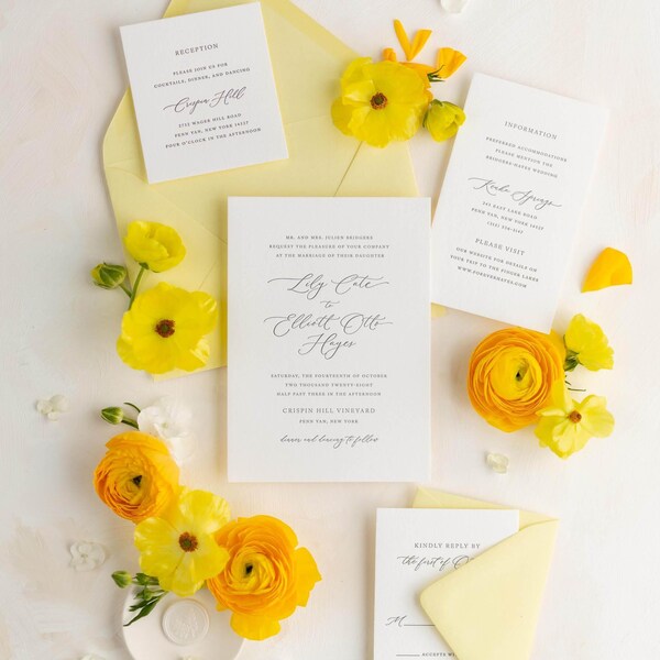 Yellow Wedding Invitations with Gorgeous Calligraphy Font | Shine ...