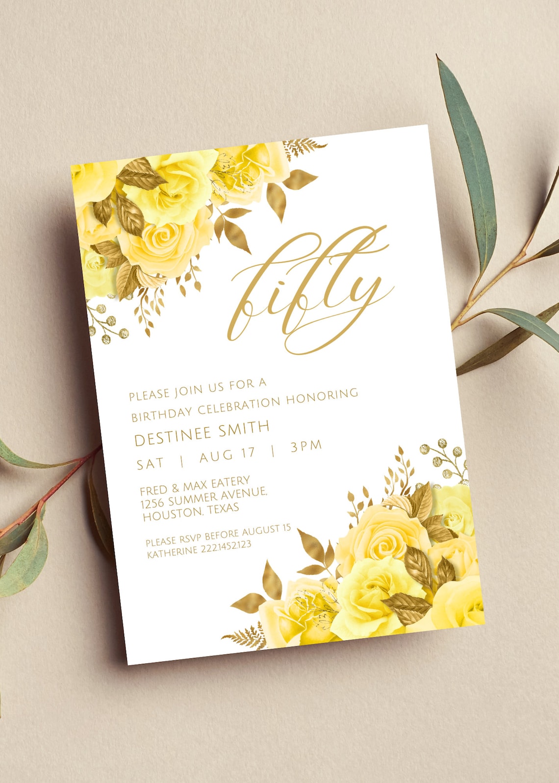 Editable Yellow and Gold Floral Invitation, Yellow and Gold Flowers ...