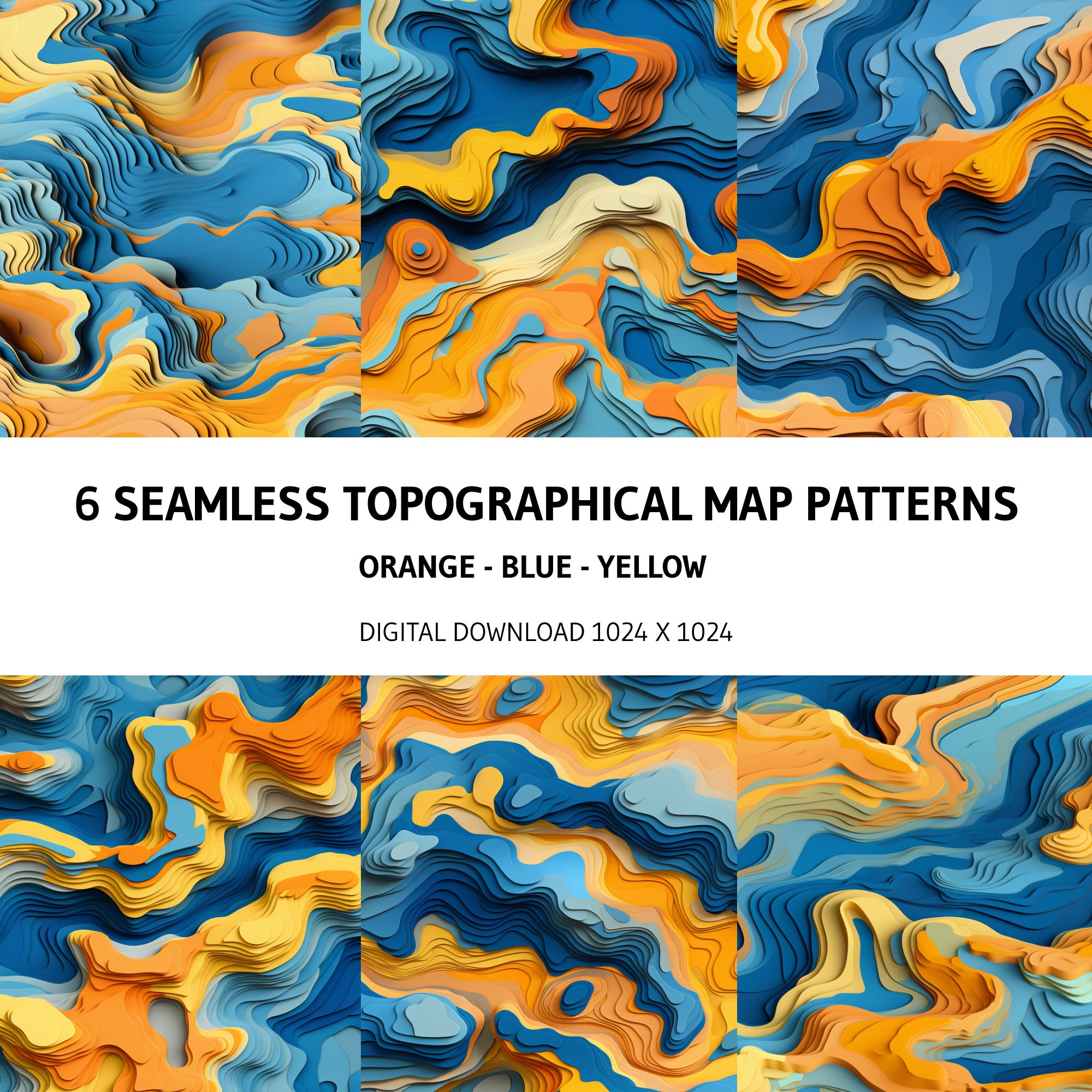 Digital Seamless Orange Blue and Yellow Topographical Map Patterns - Etsy