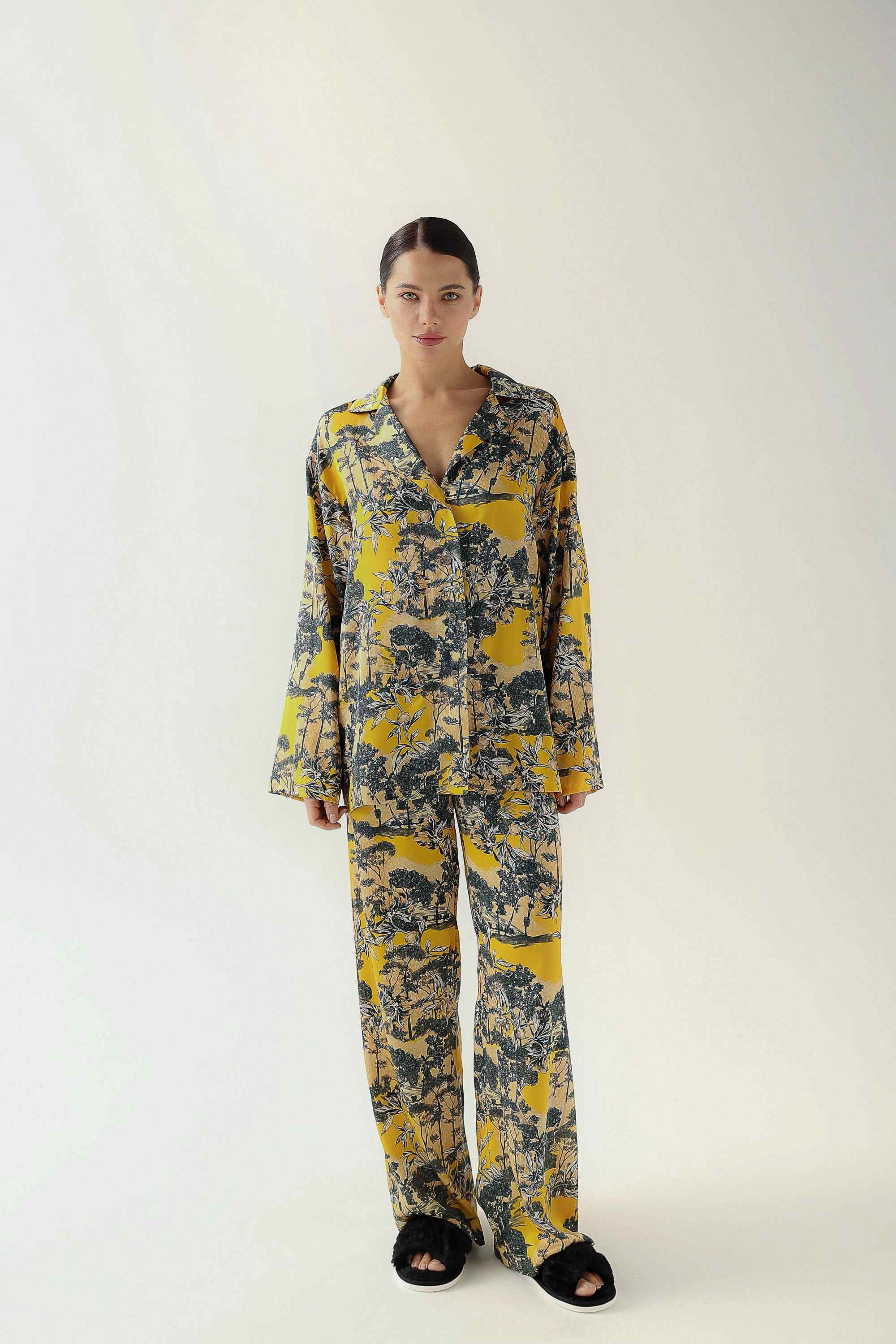 Women's yellow patterned pajamas