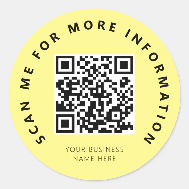 Scan For More Information QR Code Light Yellow Classic Round Sticker ...