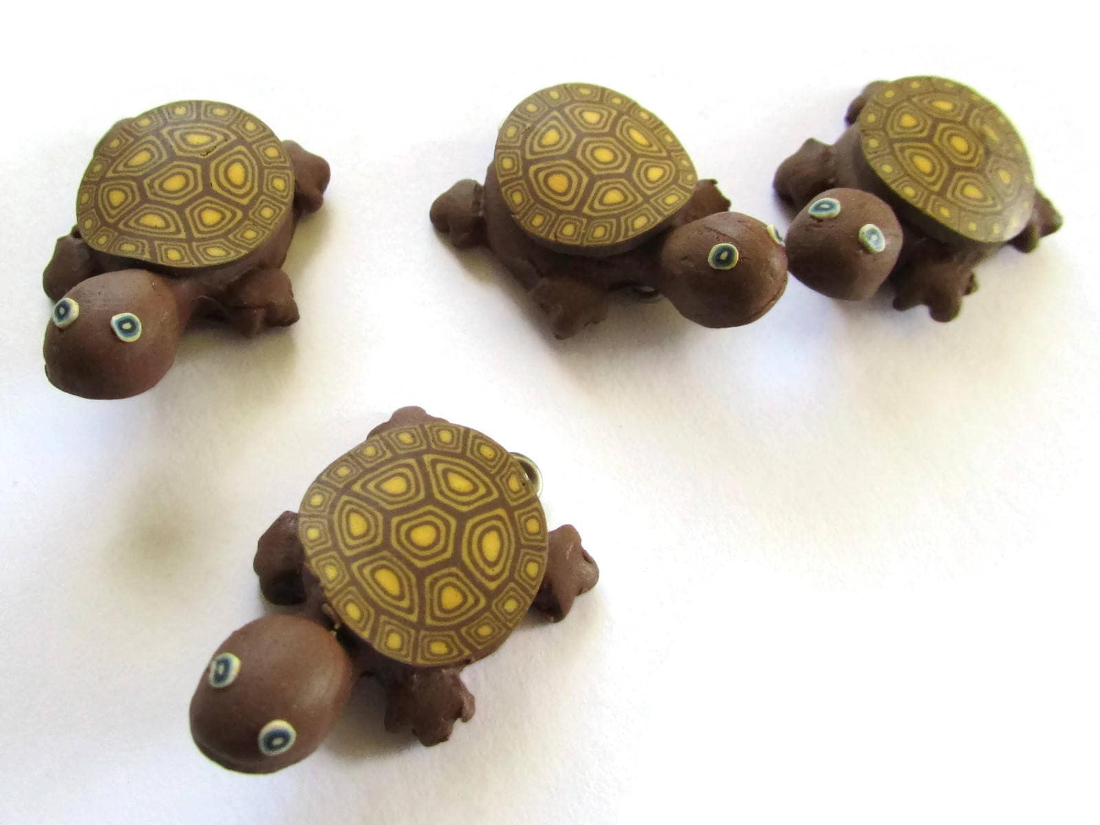 4 Brown Turtles with Yellow Spotted Shell Turtle Charms