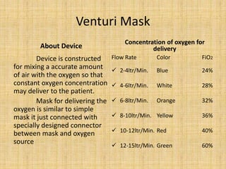 Venturi Mask for Oxygen Delivery Administration | PPTX