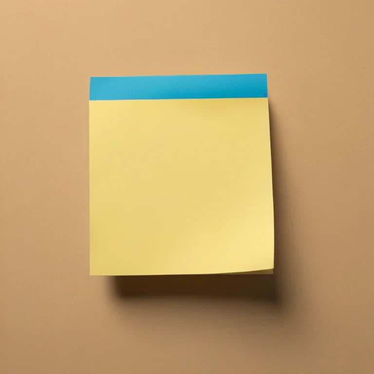 Bright Yellow Sticky Note with Blue Top Edge on Neutral Background
