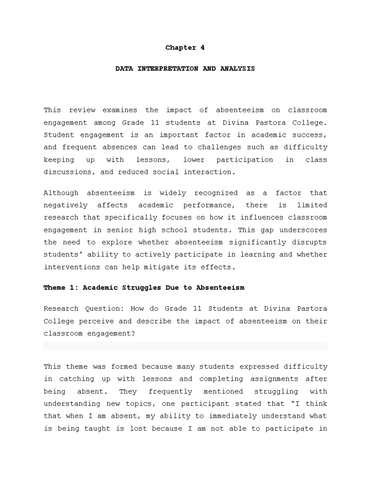 Chapter 4 - yes - Chapter 4 DATA INTERPRETATION AND ANALYSIS This ...