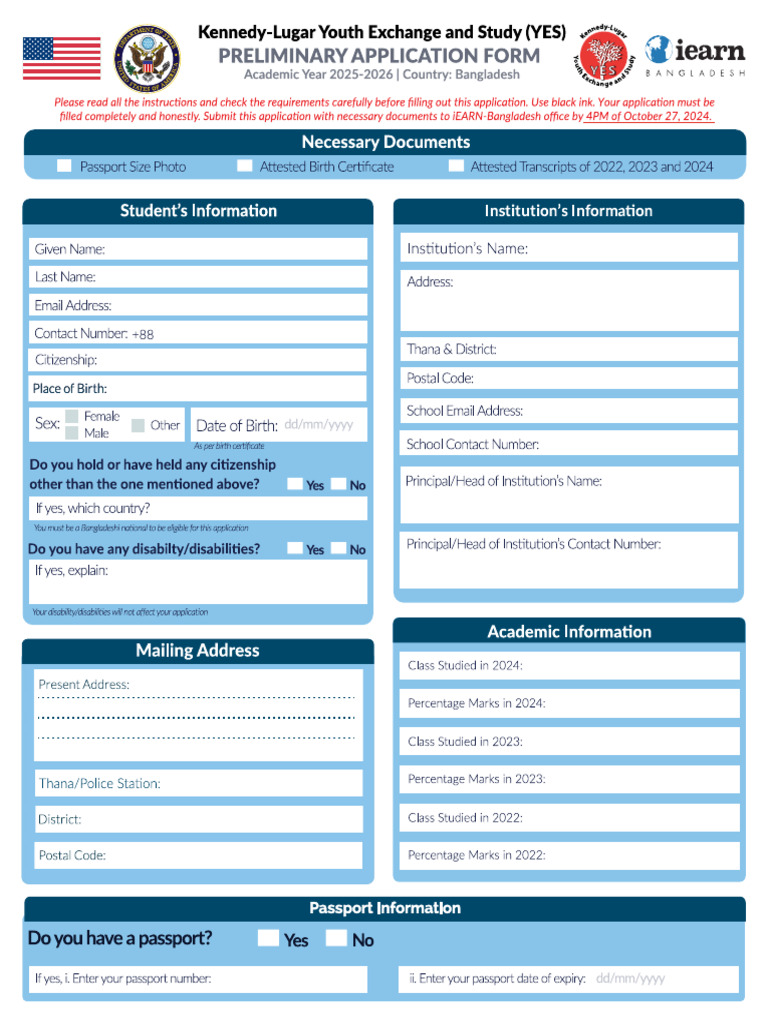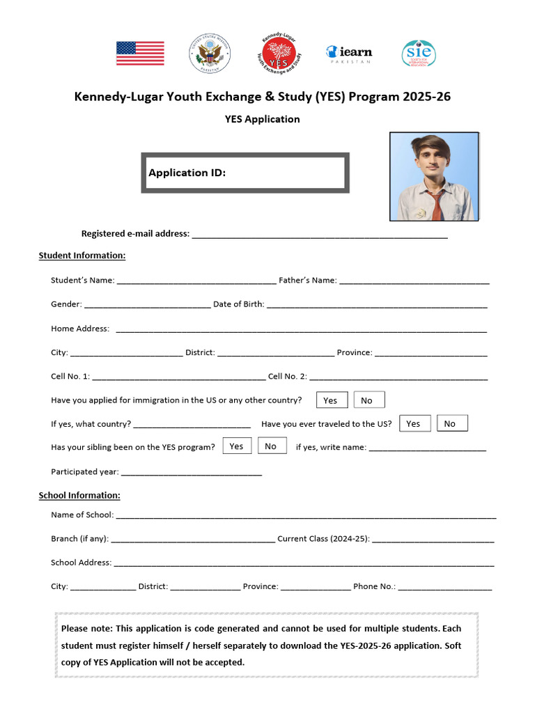 YES Preliminary Application Form 2025-2026 for Print | PDF