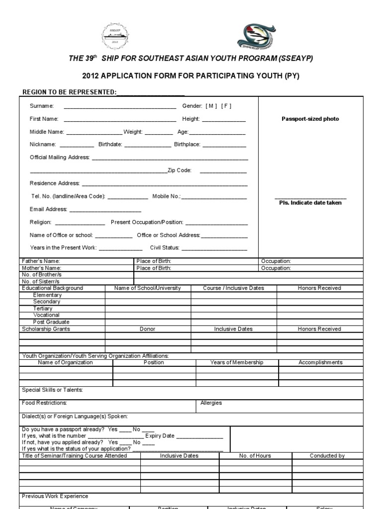 Application Form For Participating Youth-2012 With Logos | PDF | Government
