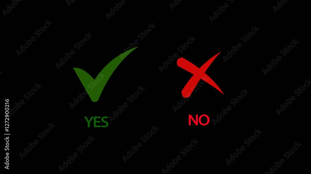animated yes or no icon on black screen. check mark or cross mark ...
