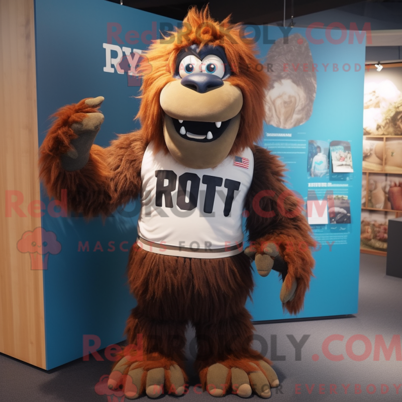 Rust Yeti mascot costume character dressed with a Rugby Shirt and ...