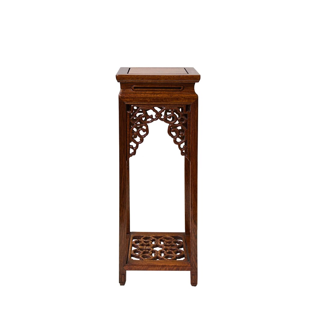 Natural Brown Wood Ru Yi Pattern Rectangular Table Top Stand Riser ...