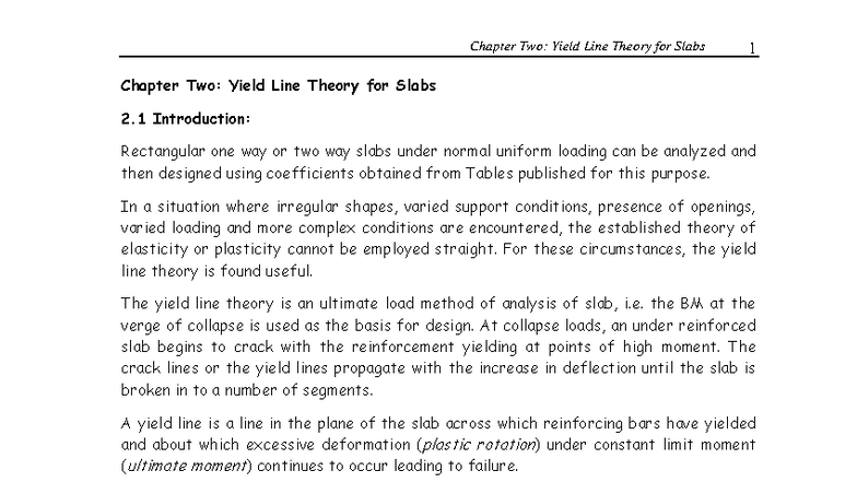RC II Chapter 3: Detailed Analysis of Yield Line Theory for Slabs - Studocu