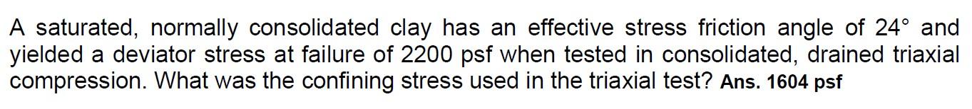 Solved A saturated, normally consolidated clay has an | Chegg.com