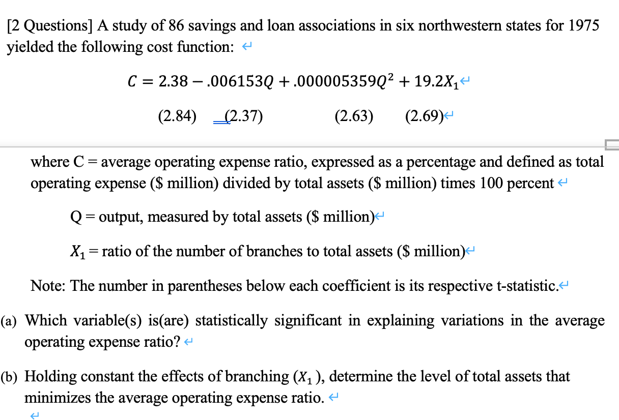 Solved [2 Questions] A study of 86 savings and loan | Chegg.com