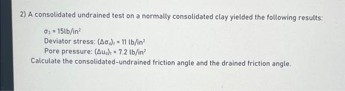 Solved 2) A consolidated undrained test on a normally | Chegg.com