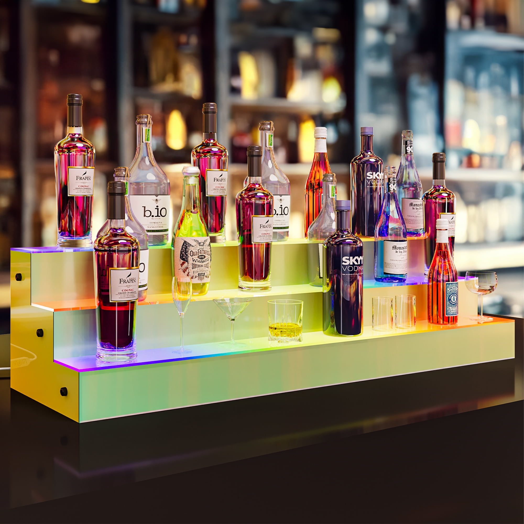 LED Liquor Bottle Display Shelf 3 Tier 40-Inch Lighted Bar Shelves ...